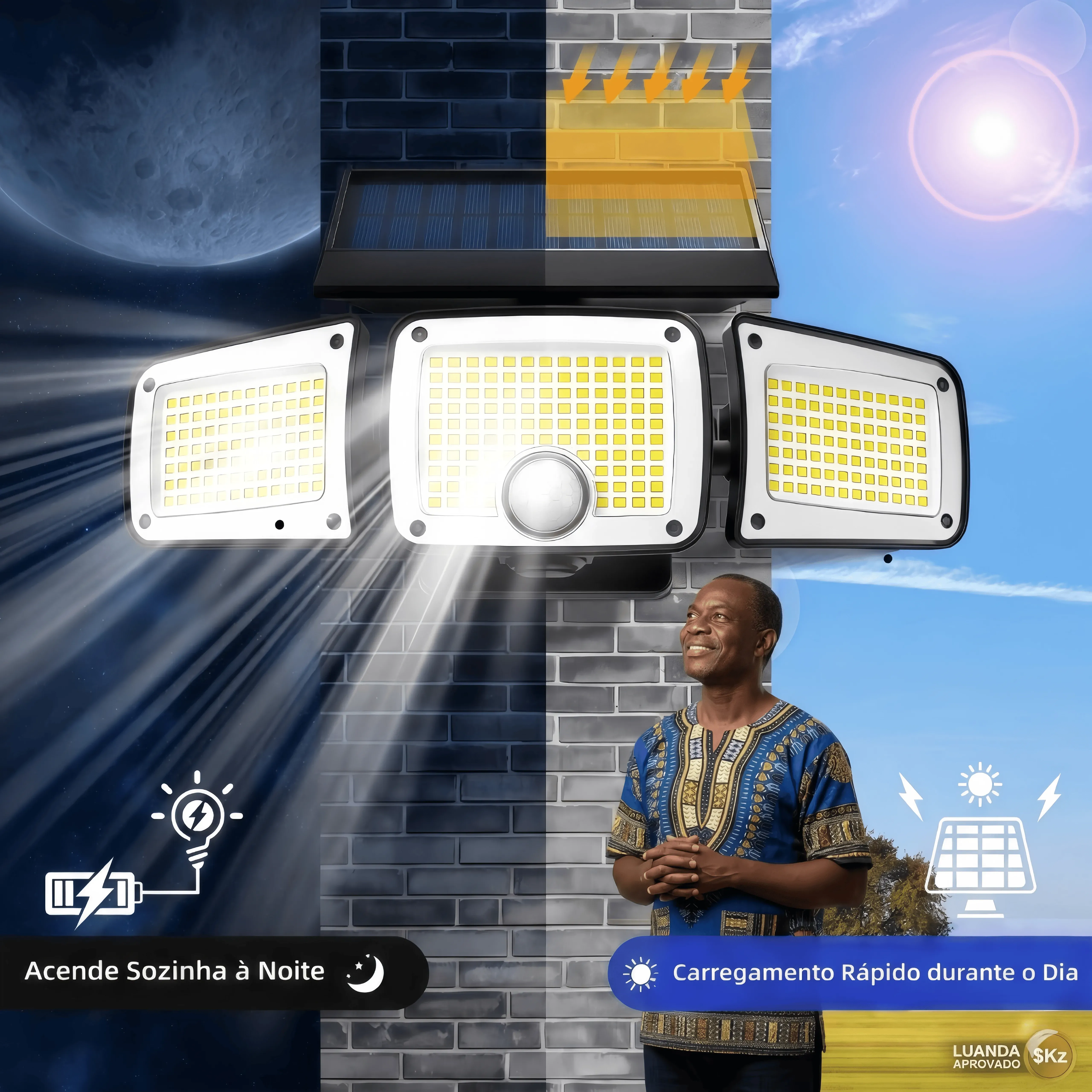Holofote Solar Super Potente (222 LED) com Sensor e Controle - Conta de Luz 0 Kz